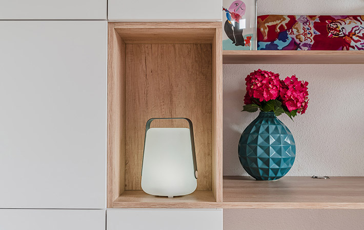 Projet d’aménagement sous escalier avec la conception de rangements intégrés et d’un espace bureau sur-mesure. Du blanc mat pour les façades, du stratifié chêne clair pour le plateau de bureau et les niches ouvertes permettent de créer une belle harmonie de couleurs avec l’existant.
